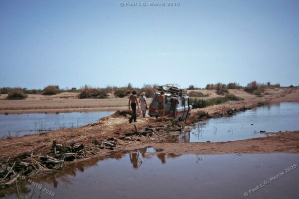 Further on, I stayed behind with the Land Rover while the others went to visit a local chief or Sultan using the Transit which got stuck on this makeshift bridge nearly toppling into the river. This was around Rey Bouba: