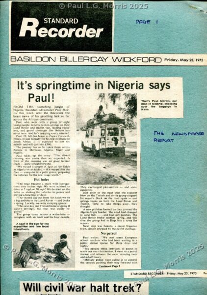 This final image is a scan from my scrapbook showing the article and photos published in my local paper, the ‘Basildon Standard Recorder’ on 23rd May 1975: