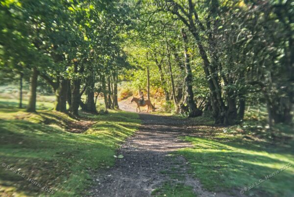 The following image of the horse rider would have made a nice photo with a decent lens and zooming in a bit. This photo wasn’t set up – it was pure luck (or serendipity) that the horse rider rode through at that point when the sun shone through the clouds: