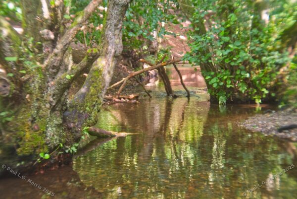 A view of the stream through the woods. Again the Lomography effect with poor resolution at the centre