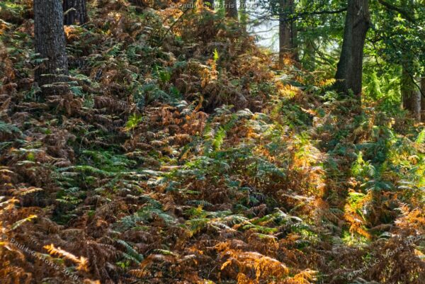 Cannock Chase: Bracken on a hillside in the woods back illuminated by the sun. I was hoping for better ‘Bokeh’