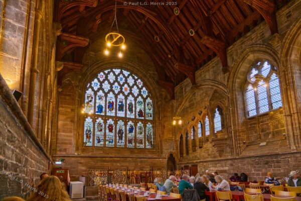 It’s not every day you can enjoy a cuppa in a 700-800 year old building! The stained glass window is the ‘Creation Window’ depicting the six days of creation.