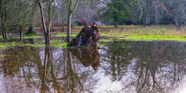 Recently we went to the National Trust property of Shugborough – it is one of our ‘go-to’ places for when we want a pleasant, less demanding walk. On this day there had been a little flooding that had largely receded but there were still places, such as the arboretum, where some of the ground was still covered in water. It was quite a still day so that both the river and the ground water provided some interesting reflections.