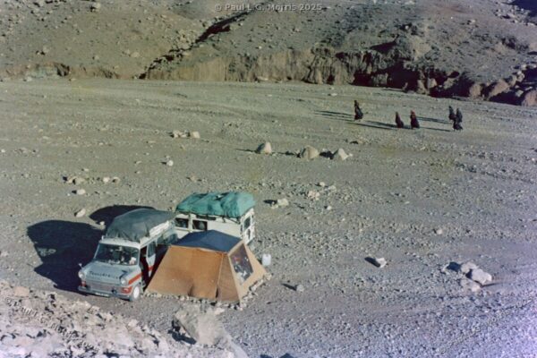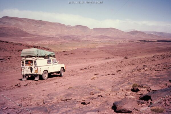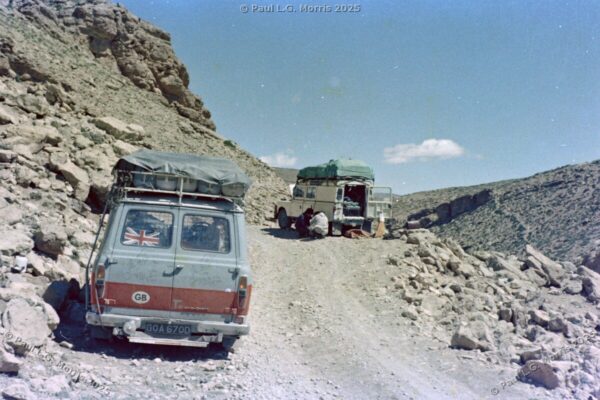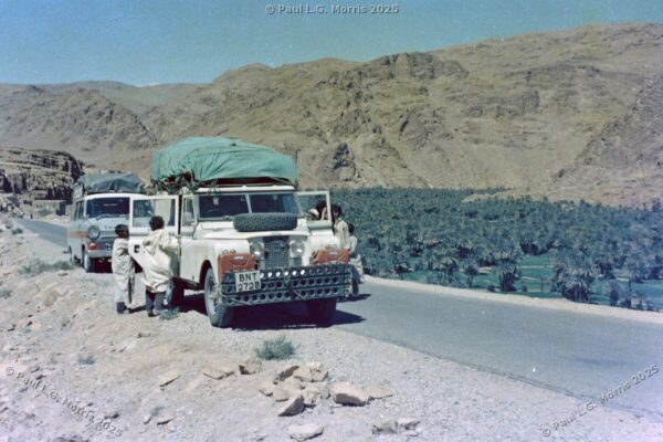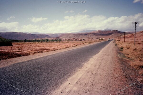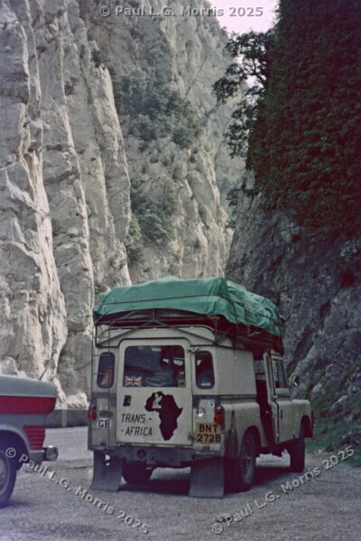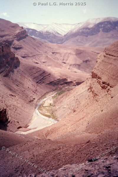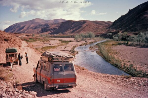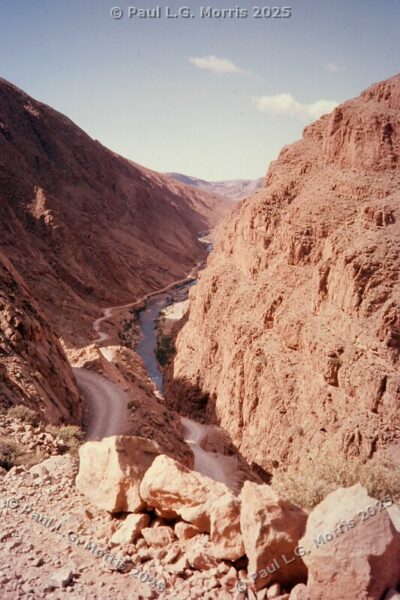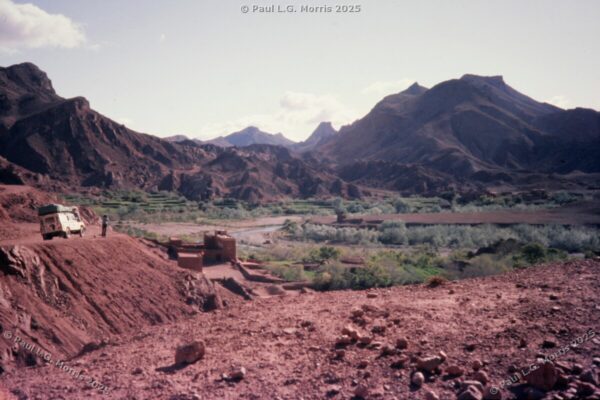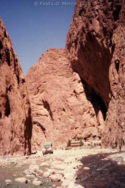 Further up I decided to ride on the roof rack; the views of the gorge were just amazing. For the next photo of Dades Gorge I wrote about it in my post of 31st May 2025 in response to someone posting a very similar, modern view: https://www.pmstudios.co.uk/blog/?p=9495 – this is what gave me the inspiration to write about the trip 50 years ago