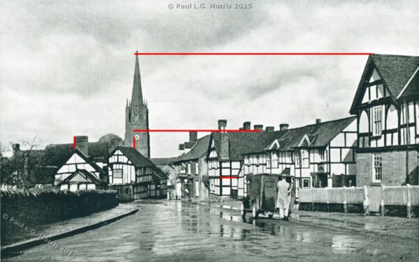 Earlier this month I visited the old village of Weobley to try and take a similar view. Despite taking a copy of the original photo with me, the alignment wasn’t as good as I hoped. This is the original photo I was trying to replicate: